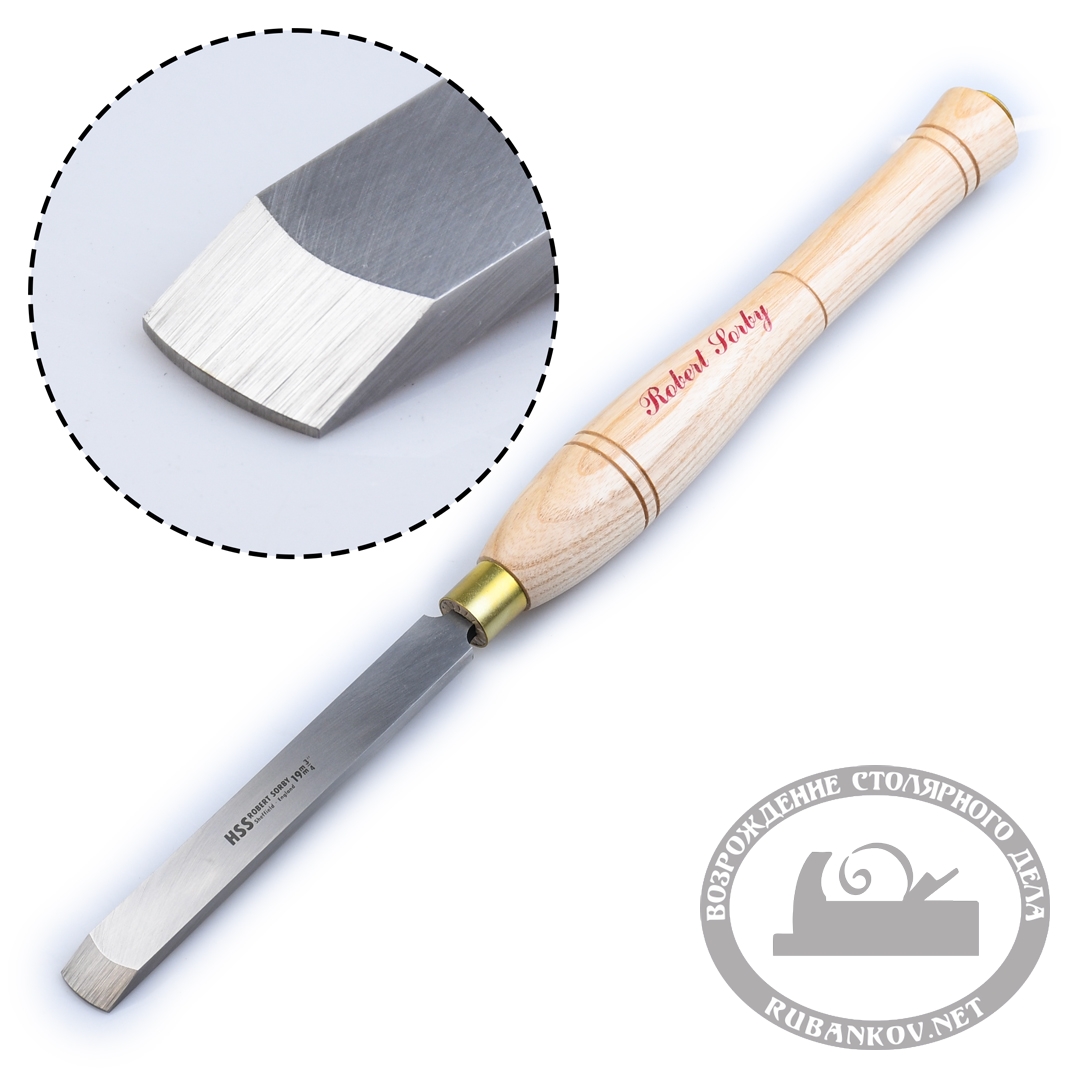Токарный резец Robert Sorby Hardwood Scraper для работы с особо твердой древесиной. Отличительной особенностью резца является обратный угол на торце фаски. Благодаря этой форме резец не вырывает волокна и оставляет гладкую поверхность на всех типах древесины. Длина резца: 406мм . Ширина резца - 19.05мм. Длина рукояти - 254мм. Полотно выполнено из высококачественной HSS стали. Рукоять удобной формы выполнена из ясеня и обжата латунным кольцом. Все резцы сбалансированы и проходят обязательные тесты внутри компании. Производство - Robert Sorby (Шеффилд, Великобритания)