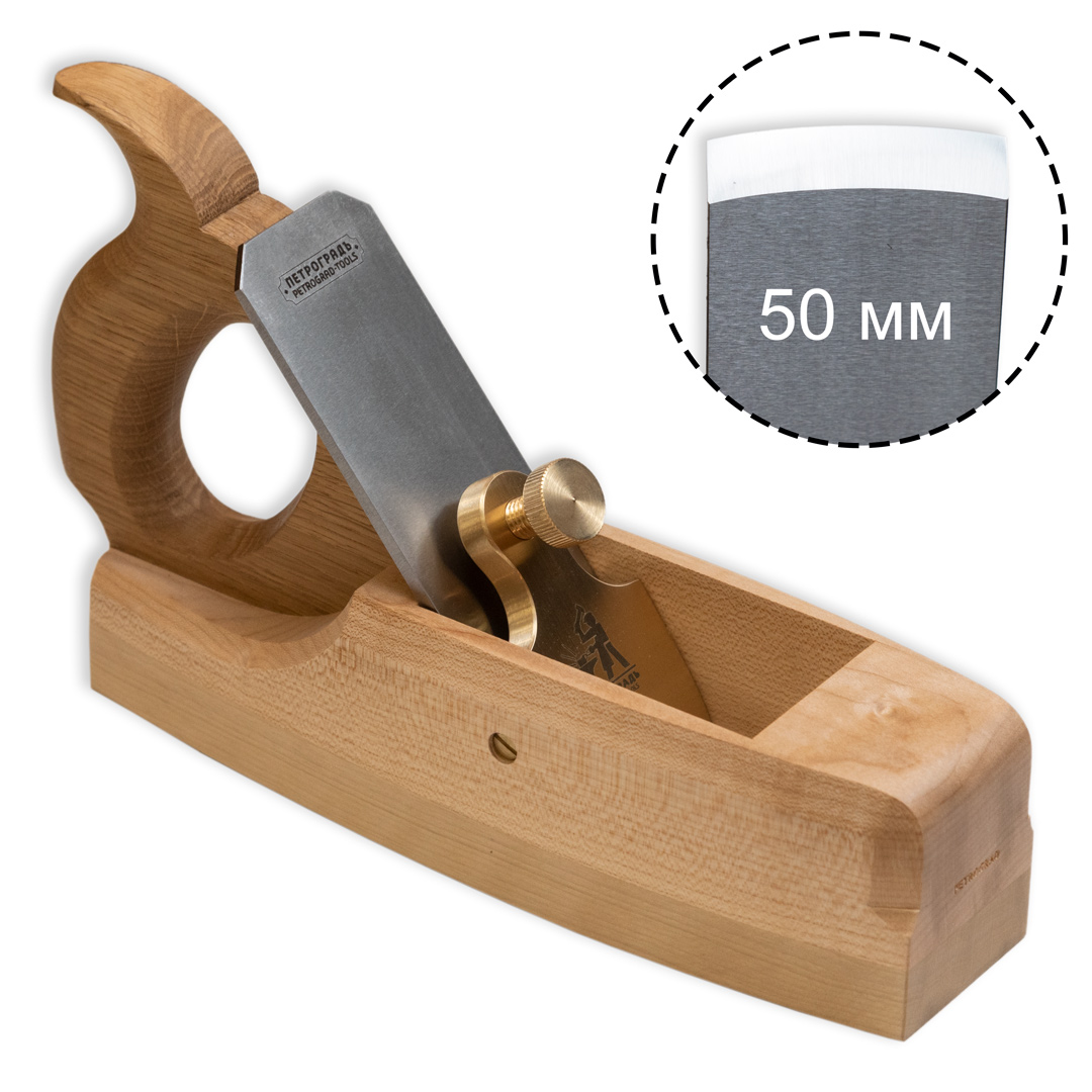 Рубанок шерхебель ПЕТРОГРАДЪ (обновленная модель) относится к выравнивающим рубанкам и используется для чернового строгания со съёмом большого массы древесины. В шерхебель устанавливается нож с закругленной режущей кромкой (полукруглый, радиусный) что способствует легкому врезанию в дерево и позволяет более агрессивно срезать материал. В обновленной версии рубанка мы изменили систему фиксации рубаночного ножа, на замену деревянному клину пришел латунный фиксатор с логотипом фабрики. Благодаря этому нововведения нам удалось улучшить пользовательский опыт использования рубанка, убыстрить настройку и замену ножа, а также уменьшить вероятность вибрации ножа при работе. Производство фабрика ПЕТРОГРАДЪ (Россия).