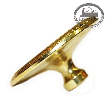 Ручка-кнопка мебельная.Материал- латунь. Стиль - *Empire*. Декор поверхности - полированная лакированная латунь. Размеры: диаметр -50мм, высота - 22мм. Крепление на винт М4. Винт в комплект не входит. Производитель: KHEPHREN (Франция)