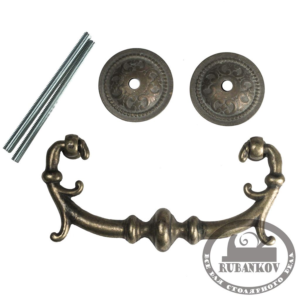 Ручка-скоба. Стиль - "17th Century English". Межцентровое расстояние - 78мм. Габаритные размеры - 66мм х 107мм. Материал - латунь патинированная . Тип крепления: шпилька (винт) М4. В комплекте: ручка-скоба, шпилька М4х60 2шт, гайка квадратная М4 2шт. Производитель: LBB - Wolber Antikzubehцr, Германия.