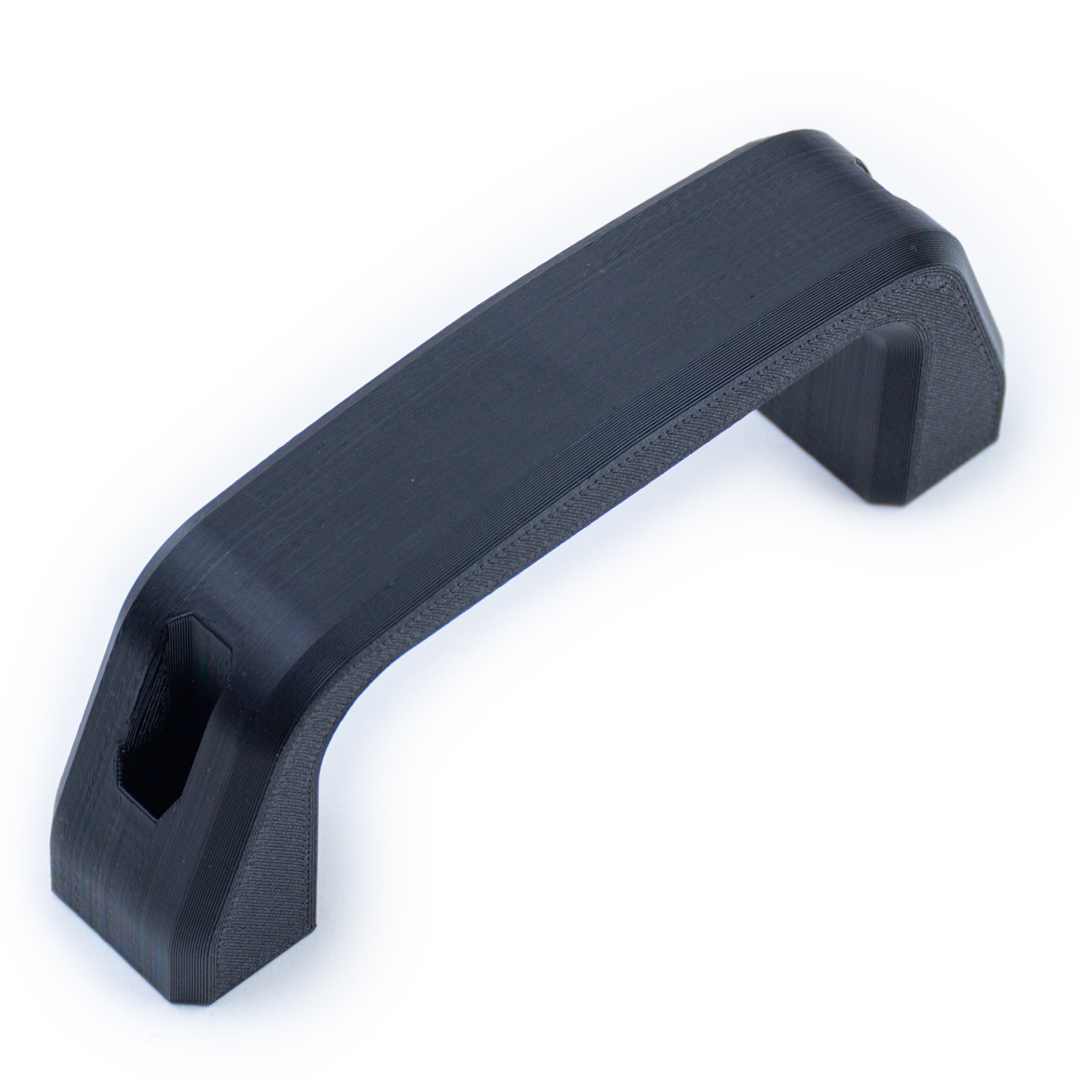 Рукоять С-образная, 134мм*50мм, межосевое расстояние - 113мм. Универсальная С-образная рукоять, выполненная из очень прочного пластика. Может быть использована для дверей, чемоданов, ящиков. Сделано в России.