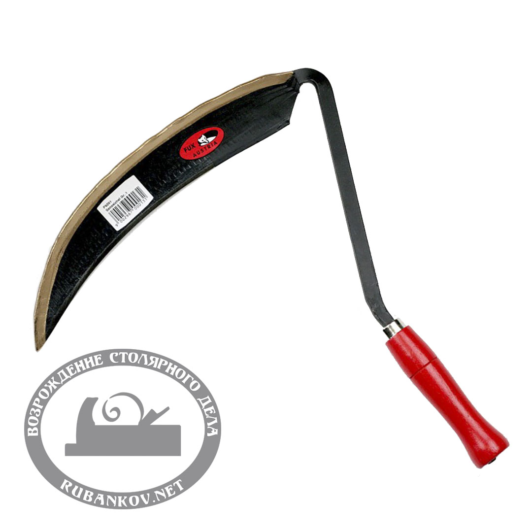 Элегантно изогнутая коса-серп для скашивания дикорастущих трав и злаков. Ручка имеет красный цвет и позволяет легко найти инструмент даже в длинной траве.