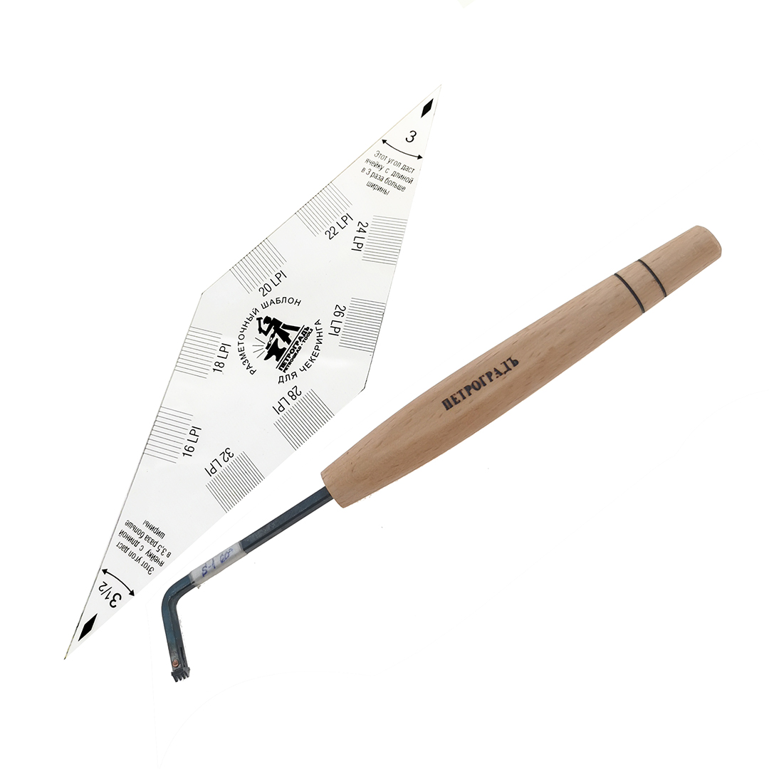 На ребрах шаблона нанесена гравировка с указанием количества линий чекеринга на дюйм.