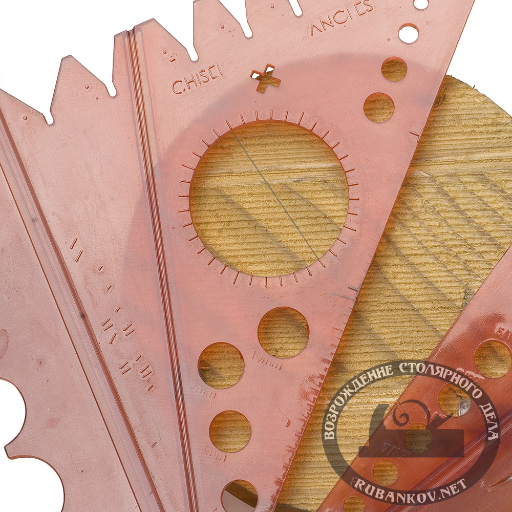 Шаблон для токарей. Содержит большое количество функций необходимых для повседневного контроля и измерения: контроль глубины и угла ласточкиных хвостов(наружных и внутренних для крепления в токарном патроне), контроль диаметров, центроискатель, шаблон углов заточки инструмента, транспортир, шаблон для установки планшайбы, линейка и др. Выполнен из прочного пластика. Размеры 180мм х 180мм. Производство - Teknatool (Новая Зеландия / Китай)
