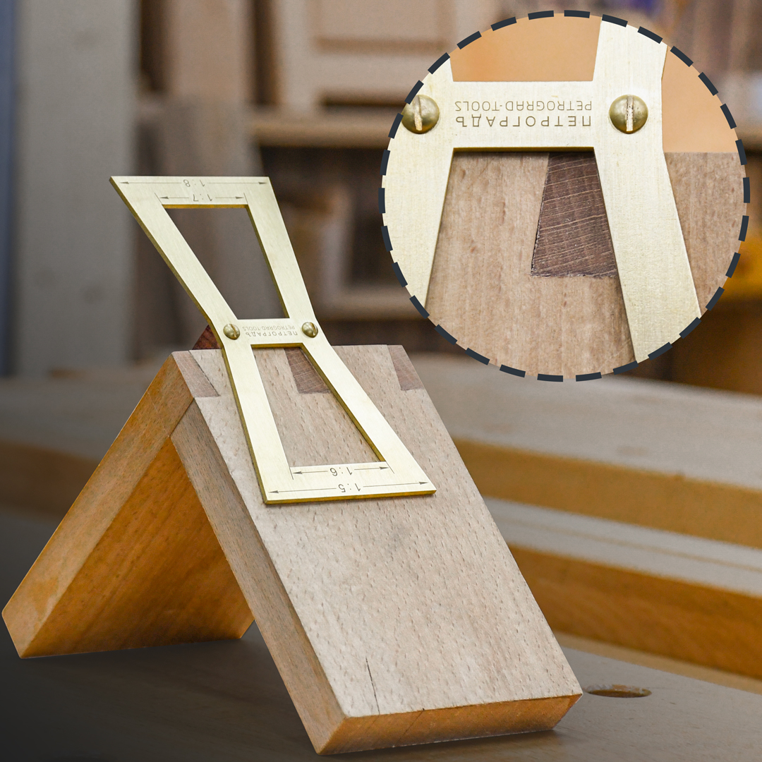 Соединение "Ласточкин хвост" требует высокоточной разметки с соблюдением определенных углов. В этом вам поможет шаблон разметочный для косых шипов Петроградъ. Он позволяет без особых усилий разметить шипы и гнезда соединения, повысив ваши шансы на получение идеального результата.