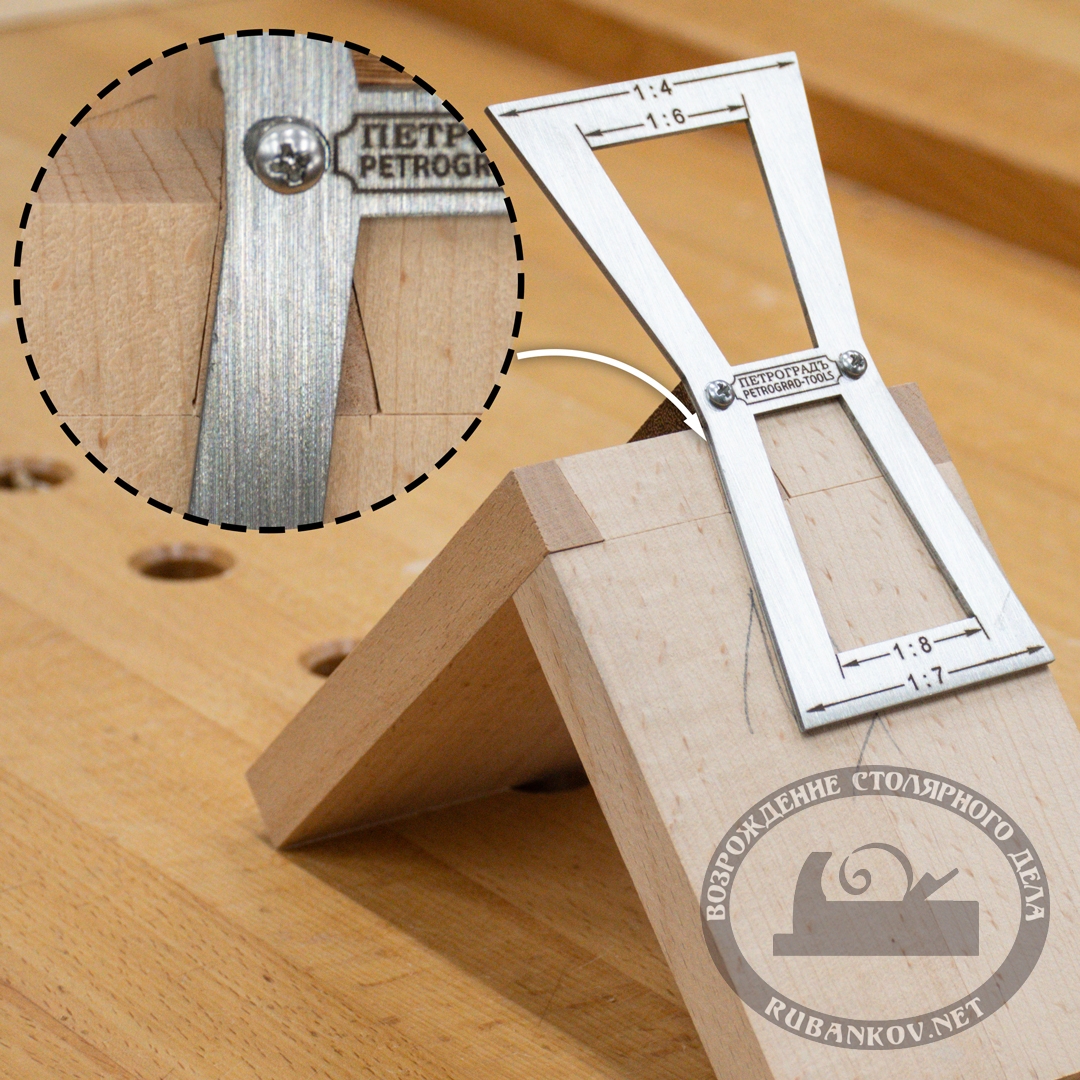 Шаблон с углом наклона 1:7 является универсальным и позволяет разметить соединение как на мягких, так и на твердых породах древесины.