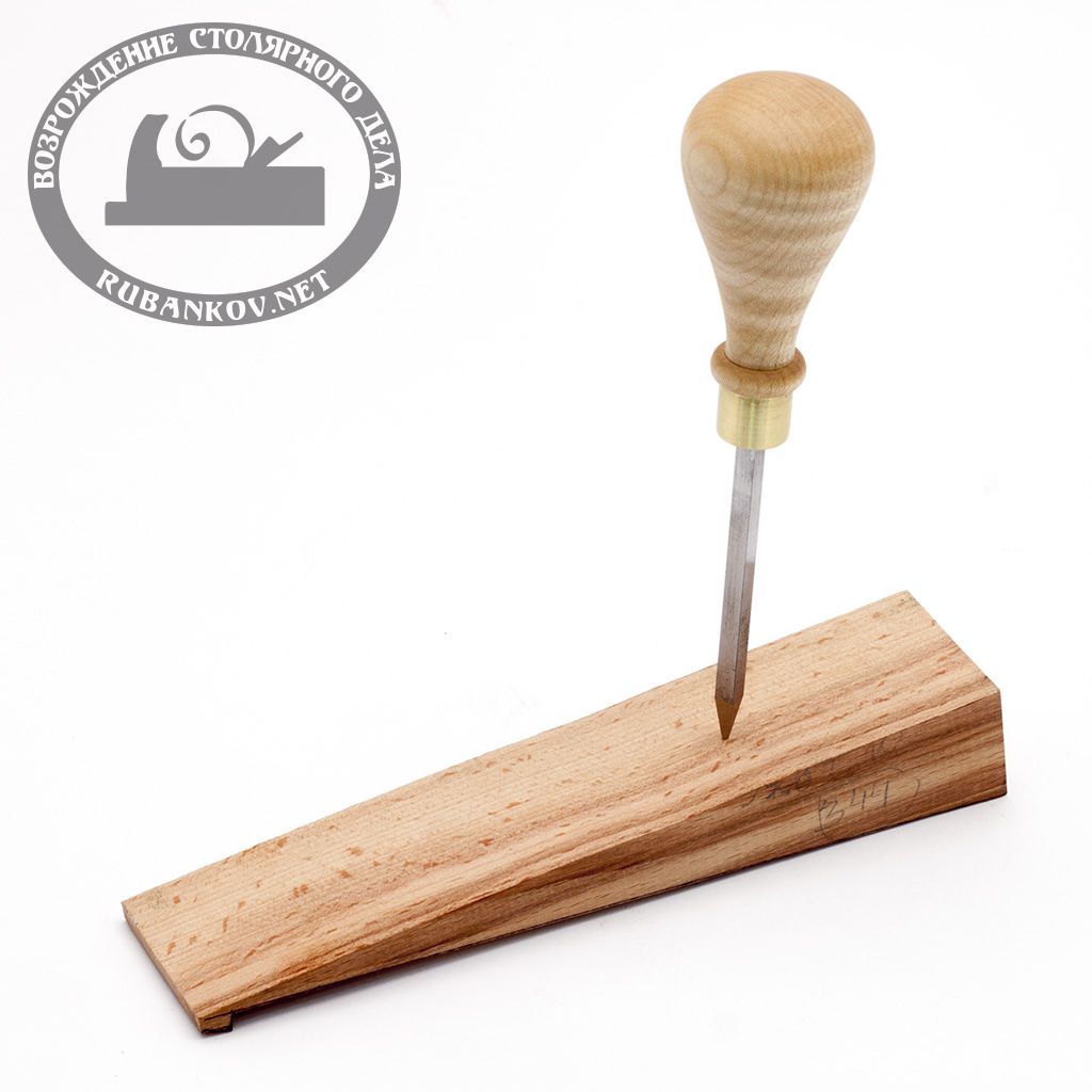 Силовое шило ПЕТРОГРАДЪ имеет квадратный профиль клинка, что позволяет размечать центра отверстий и не сбиваться под воздействием волокон древесины. Клинок выполнен из углеродистой стали и имеет закалку рабочей части 4-5 см. Твердость рабочей части HRC 55-60. Его длина - 80±5 мм, сечение 5мм х 5мм. Форма рукояти позволяет упираться всей ладонью, обжата латунным кольцом. Материал рукояти - ясень, пропитана маслом. Полная длина шила 165±5 мм. Производство ПЕТРОГРАДЪ - (Россия)
