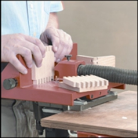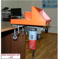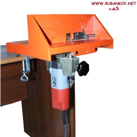 Шипорезное приспособление для создания точных шиповых соединений без использования шаблонов. В комплекте прямая шлифовальная машина Kress c 4 прямыми фрезами на 4, 6, 8, 10 мм и комплектом цанг для их установки. Данное приспособление представляет собой базу устанавливаемую на столешницу с помощью двух струбцин входящих в комплект. Снизу устанавливается прямая шлифовальная машинка с диаметром шейки 43 мм. В губки шлифовальной машинки предварительно зажимается фреза. Сверху на базу установлена подвижная площадка с возвратной пружиной. Для получения шипов предварительно выставляется размер шипа от 4 до 12 мм (с помощью специального упора перемещаемого с помощью поворотной ручки). Размер паза определяется диаметром установленной фрезы. Заготовка устанавливается на подвижную площадку, при этом упирается в заднюю стенку площадки и в специальный упор и подвижная площадка вместе с заготовкой подается на вращающуюся фрезу. Далее заготовка слегка смещается, и опять подается на фрезу. Максимальная длина шипа - 20 мм, максимальная ширина шипа 12 мм. Максимальная толщина используемой заготовки 26 мм. Длина и ширина заготовки - неограничены. Точная регулировка вылета фрезы. Разъем диаметром 35 мм для шланга пылеудаления. Прозрачный регулируемый щиток. Точная подгонка всех деталей и соединений - без люфтов. Масса 7 кг. Размер шипорезки: 275 х 280 х 250 мм. Мощность электрической прямой шлифовальной машинки 530 Вт, частота вращения 29000 об/мин. Производство Hegner (Германия).