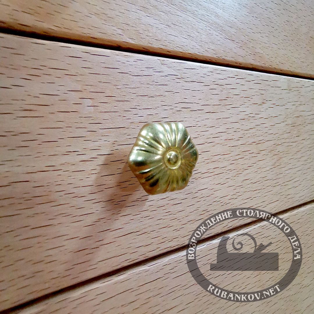 Ящики имеют деревянные направляющие. На фасады установлены ручки-ракушки с рамкой для бумажного указателя.