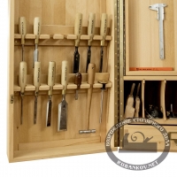 Удобный органайзер для рубанков позволяет их держать всегда под рукой. В нижнем отделе имеется 2 ящика для мелких инструментов. Достаточная толщина боковых стенок и филенок дверец позволяет закрепить на них различные держатели и кейсы для инструмента. Держатель инструмента крепления стамесок входят в комплект (1 шт.).