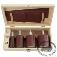 Набор из 4 цилиндров способен выполнить любую работу по криволинейной шлифовке. Система зажима шлифовального материала позволяет использовать листовой абразив и тем самым сокращая расходы на покупку специальных гильз. Высота обрабатываемой заготовки - до 70мм. Диаметры барабанов - 25мм, 54мм, 63мм и 76мм, диаметры хвостовиков - 6,35мм и 12,7мм. В комплекте 2 сменных хвостовика диаметрами 6,35мм и 9,5мм. Может устанавливаться в шуруповерты, дрели и сверлильные станки. Поставляется в практичном деревянном футляре. Подложка барабанов - неопреновая. Максимальная скорость вращения - 4000 оборотов в минуту, рекомендуется скорость вращения 1500 оборотов в минуту. Производство Axminster (Великобритания)