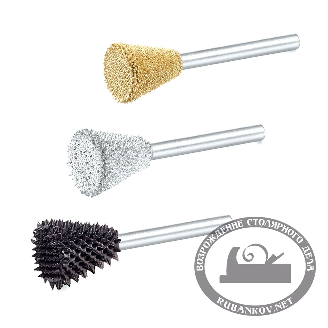Шлифовальные головки Kutzall, цилиндрические рашпильного типа. Этими насадками можно работать по дереву, пластику, искусственному мягкому камню, оргстеклу, газобетону. НЕ ДЛЯ РАБОТЫ ПО МЕТАЛЛУ! Благодаря на их форме, прекрасно работают с плоскими гранеными поверхностями и формами, в скульптурной резьбе, грубой обработки угловатых форм и других задач.