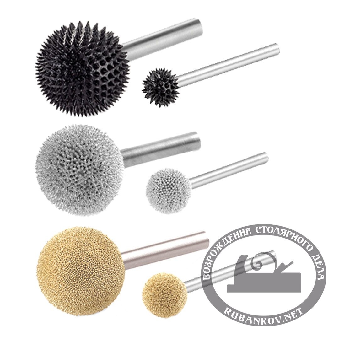 Шлифовальные головки Kutzall, шарообразные рашпильного типа. Этими насадками можно работать по дереву, пластику, искусственному мягкому камню, оргстеклу, газобетону. НЕ ДЛЯ РАБОТЫ ПО МЕТАЛЛУ! Благодаря на их сферической форме, прекрасно работают с вогнутыми поверхностями и формами скульптурной резьбе, резьбе ложек, мисок и многого другого.
