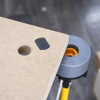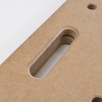 - Овальное отверстие: 127 х 27 мм, для удобного переноса одной рукой, для фиксации заготовок струбцинами, работ с лобзиком.