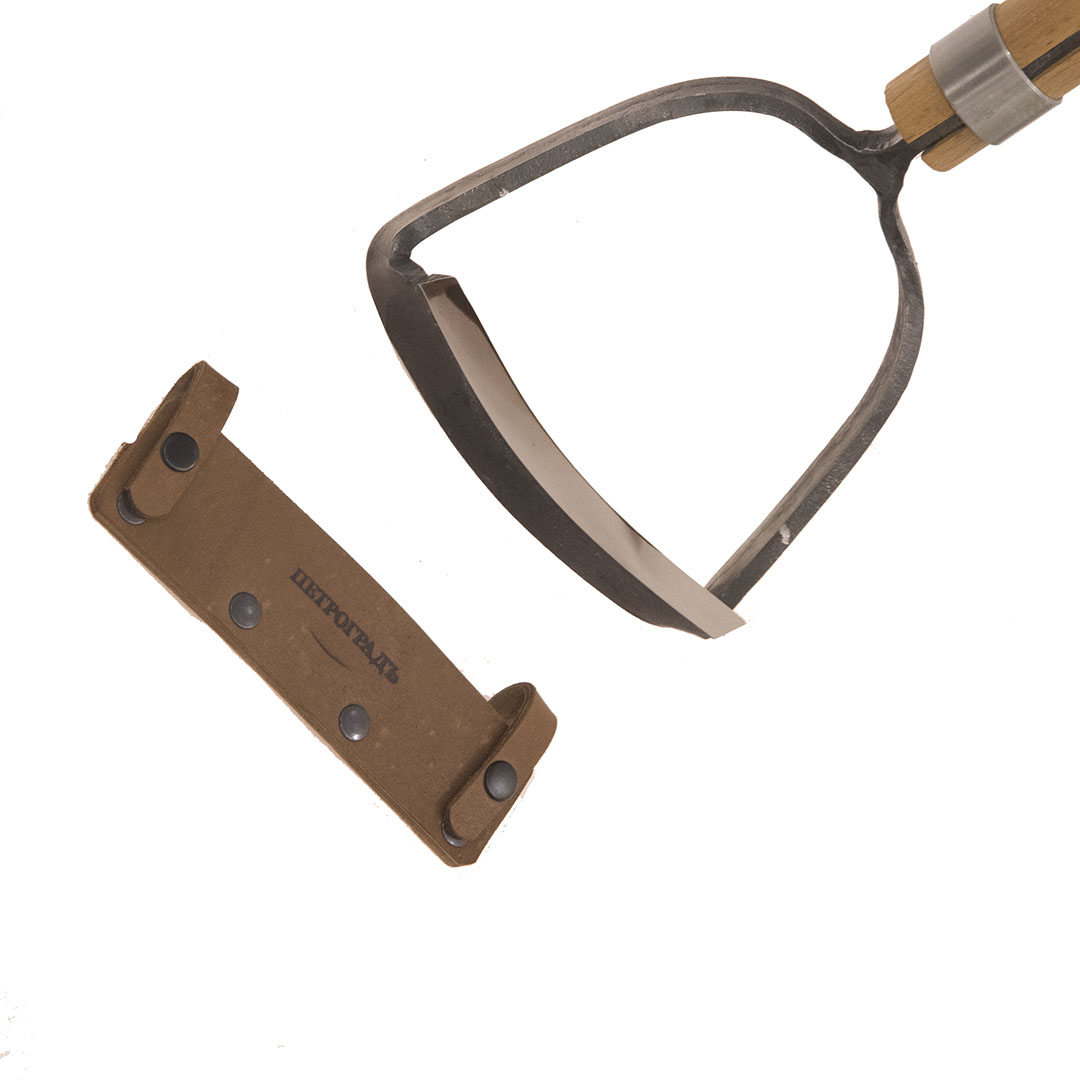 Используется для удаления коры с бревен и для сглаживания древесины. Лезвие выковано из высококачественной стали 65Г. Лезвие имеет изогнутую форму что позволяет контролировать скобель вокруг сучьев и наростов на древесине. Длина режущей кромки 140 мм и ширина полотна 40 мм. Рукоять выполнена из древесины бука и покрыта маслом. Полная длина скобеля 880 мм. Скобель укомплектован удобным кожаным чехлом с застёжками на кнопках.