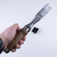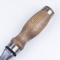 Ручка ударной стамески изготавливается из древесины ясеня с подборкой направления волокон. Все ручки ударных стамесок обжаты стальным кольцом в районе торца и крепления полотна к рукояти. Благодаря этому ручка не будет раскалываться и будет меньше подвержена деформация от применения ударного инструмента:киянки, молотка и т.п.
