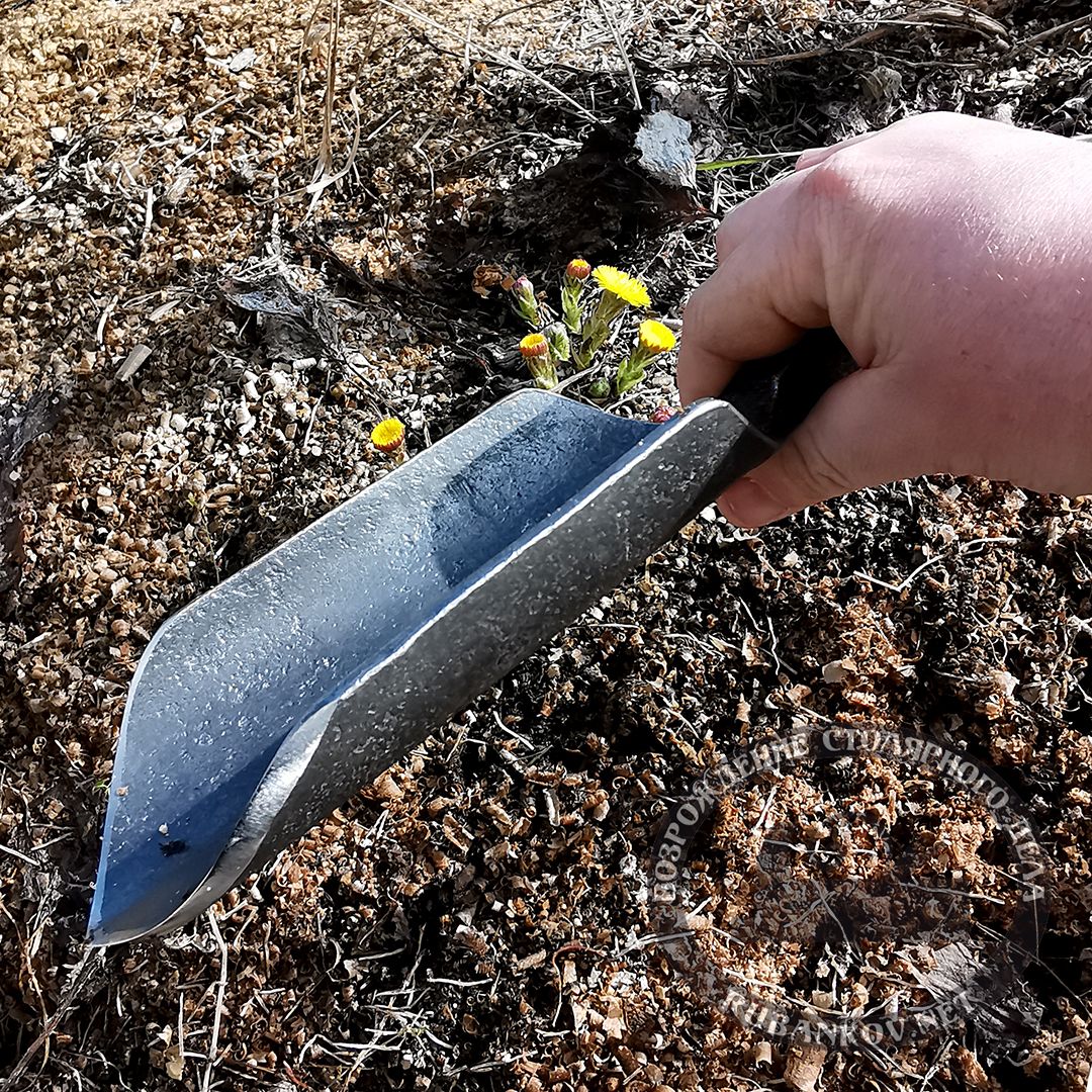 Это кованая лопатка для посадки - удобный инструмент для посадки и высаживания молодых растений, а также для выкапывания стойких сорняков, а эллиптическое лезвие с небольшим кончиком больше подходит для твердой и каменистой почвы. Вследствие того, что совок производится исключительно в кузне, его габариты могут незначительно отличаться от заявленных в описании.