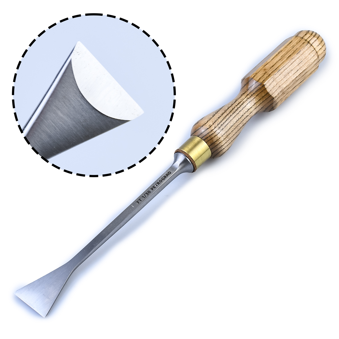 Стамеска для резьбы по дереву, ПЕТРОГРАДЪ, полукруглая N2/FT, 14мм, клинок 125мм, "рыбий хвост" это резчицкий инструмент профессионального уровня предназначен для резьбы по твердым и мягким породам древесины. Основа любого комплекта резчицкого инструмента, это прямые стамески. Прямые стамески fishtail (FT) подходит для множества задач от создания фигурных форм до подбора фона, позволяют работать в труднодоступных местах, там где не справится обычная прямая стамеска. Их можно использовать со скосом вниз или вверх для создания вогнутых или выпуклых поверхностей. Производство фабрика Петроградъ (Россия).