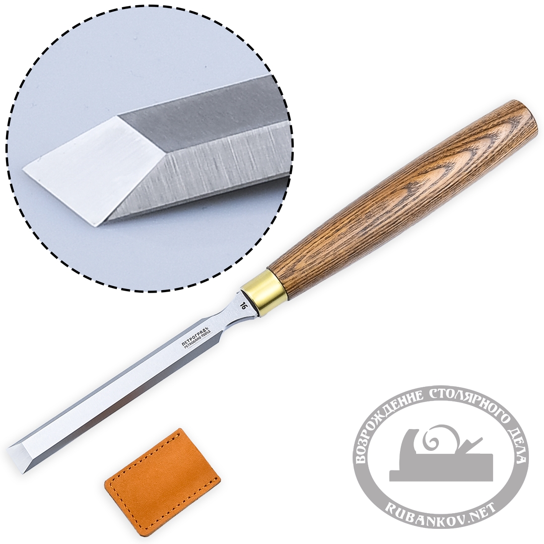 Форма лезвия имеет боковые скосы для работы в труднодоступных местах, например при подрезке и подчитки шиповых соединений: ласточкин хвост, шип-проушина, вполдерева, сковородней и прочие.