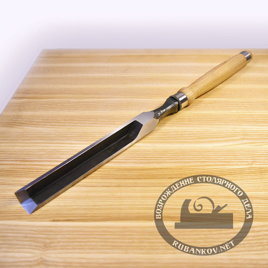 Рукояти выполнены из ясеня и обжаты двумя нержавеющими кольцами - одно для предотвращения раскалывая древесины возле рукояти, второе для упрочнения тыльника при работе с киянкой или молотком.