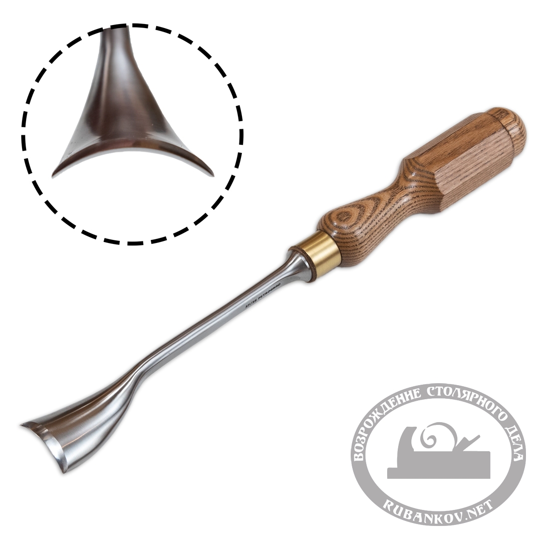 Стамески для резьбы по дереву, ПЕТРОГРАДЪ, обратные клюкарзы N37. Используется для художественных работ по дереву при работе в барочной технике, в технике Рококо и другой ажурной и рельефной резьбе по дереву. Стамеска предназначена для внешней обработки деталей резьбы, ей удобно создавать шары, полукруглые валики, цилиндры и любые другие округлые формы. Производство фабрика Петроградъ (Россия)