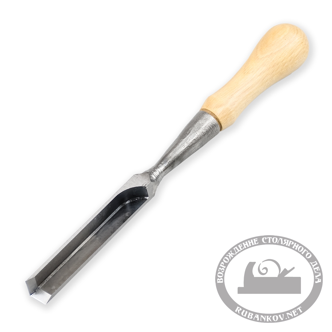 Представленная стамеска выкована вручную в кузне фабрики Петроградъ. Рукоять выполнена из граба, который выдерживает большие нагрузки, позволяющие использовать стамеску в ударном режиме.
