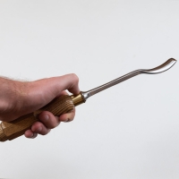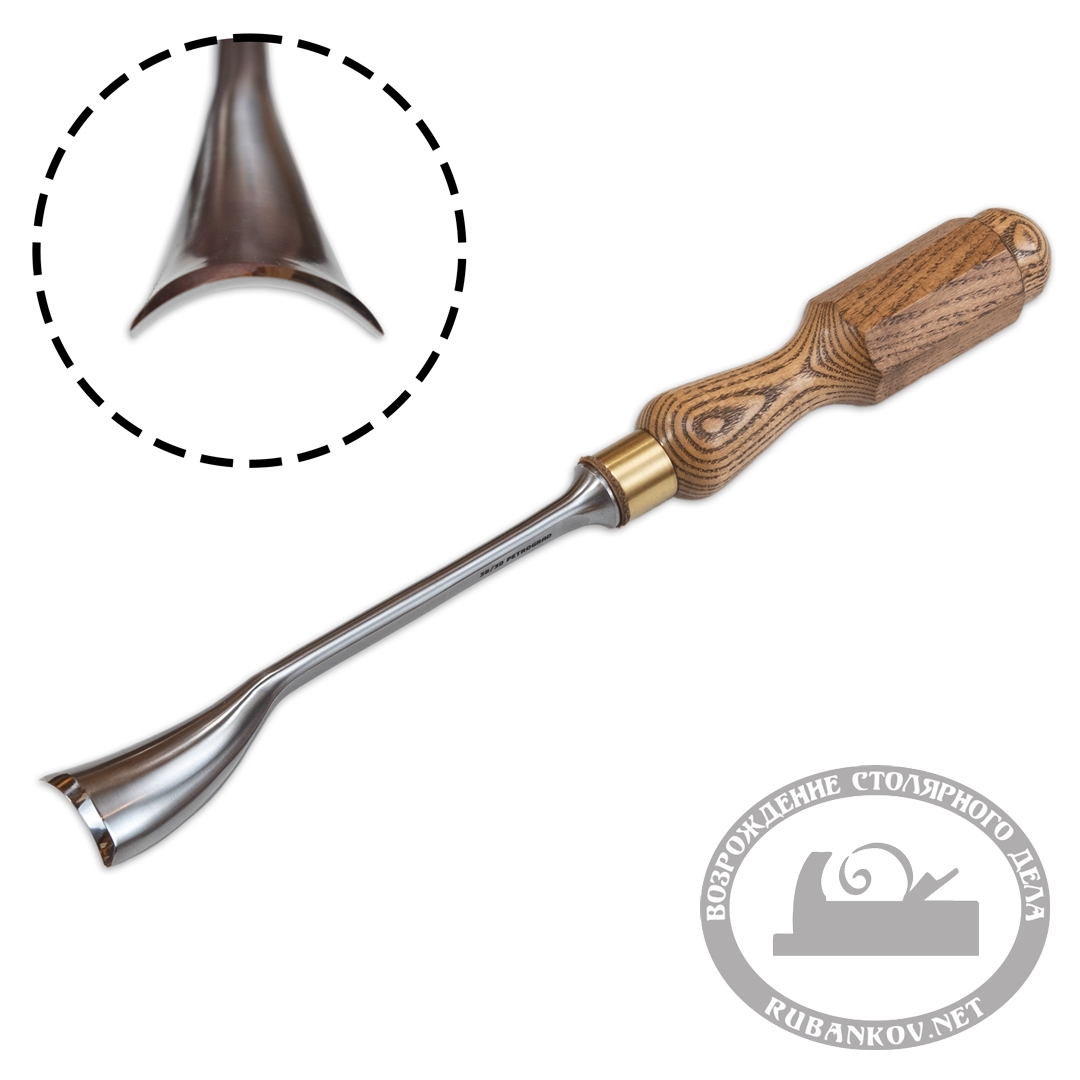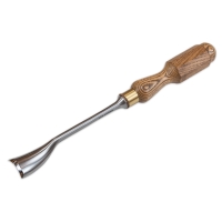 Клюкарза полукруглая, обратная, профиль Н38. Используется для художественных работ по дереву при работе в барочной технике, в технике Рококо и другой ажурной и рельефной резьбе по дереву. Стамеска предназначена для внешней обработки деталей резьбы, ей удобно создавать полукруглые валики, шары, цилиндры и любые другие округлые формы. Производство фабрика Петроградъ (Россия)