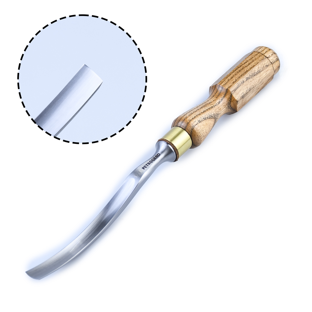 Полукруглые стамески Петроградъ откованы и низколегированной высокоуглеродистой стали, с последующей термической обработкой. Стамески этой марки, это резчицкий инструмент первоклассного качества, который справится как с мягкими, так и с твердыми породами дерева. Внутренний профиль полукруглой стамески тщательно отполирован, режущая кромка заточена и готова к работе.