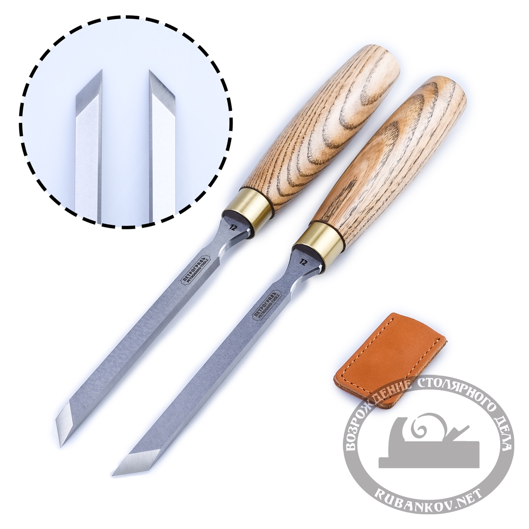 Стамески укомплектованы кожаными чехлами на режущую кромку. Инструмент поставляется в индивидуальных картонных коробах.