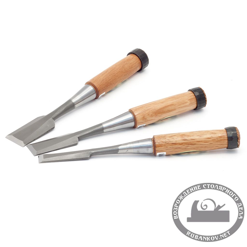 Набор из 3-х японских стамесок шириной: 15, 24 и 30 мм. Высококачественные, износостойкие стамески из быстрорежущей стали Хитачи (HSS) для долговременного использования в столярном деле, мебельном производстве, реставрации и др. Поставляются в деревянном ящике. Произведено в Японии.