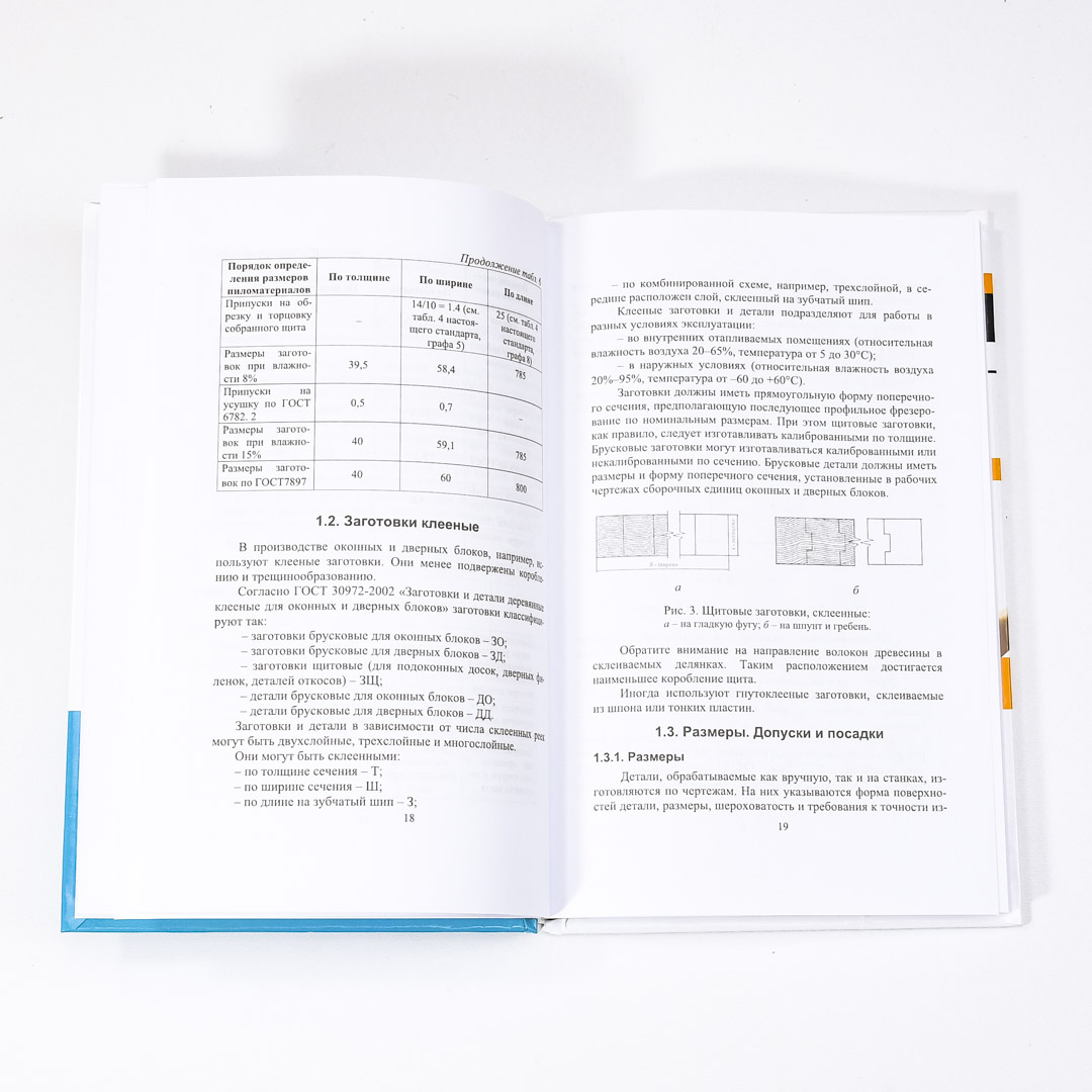 Книга состоит из пяти глав. В первой главе учебного пособия даны общие сведения о заготовках и деталях. Показаны различные виды пиломатериалов, их качество, требуемые припуски при раскрое пиломатериалов на заготовки. Показаны размеры, допуски и посадки. Приведены данные о ручных режущих и измерительных инструментах, изготовлении клееных заготовок, соединении заготовок по длине, ширине и толщине. Вторая глава посвящена изготовлению столярных тяг. Приведены данные о изготовлении досок и брусков для покрытия пола, плинтусов, наличников, поручней, обшивки, подоконных досок. В третьей главе рассмотрены рамные конструкции. Рассмотрены коробки, рамки, типы шиповых соединений, показаны корпусные конструкции, табурет, его ремонт. Четвертая глава посвящена оконным блокам, их конструкциям, изготовлению, ремонту. В пятой главе рассмотрены дверные блоки, типы, конструкции, ремонт.
