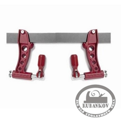Предназначены как для зажима так и для разжима. Возможность поворота губок и установка нескольких губок на одну шину позволяют зафиксировать несколько деталей одновременно. Глубина зажима - 12см. Губки из прочного ковкого чугуна. Мощная шина из прокатной стали сечением 35х8мм (90кг/мм²).Длина шины от 600мм до 1200мм.