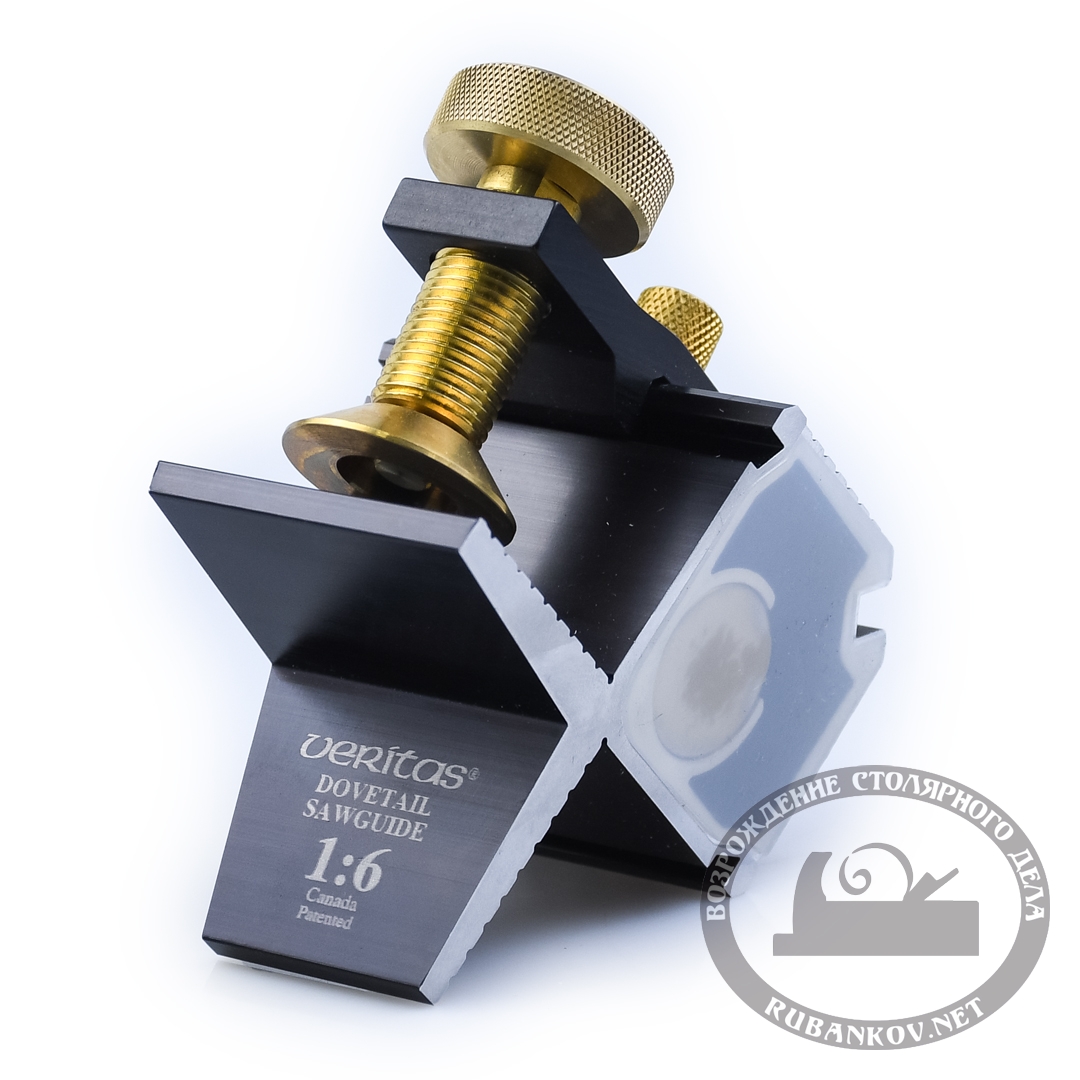 Стусло Veritas Dovetail Saw Guide. Это стусло позволяет быстро и с наименьшими усилиями выпиливать шипы соединения "ласточкин хвост". Достаточно зажать стусло с помощью винта на торце заготовки, и двигая пилу вдоль одной из сторон получить необходимый пропил. Производство – Veritas (Канада).