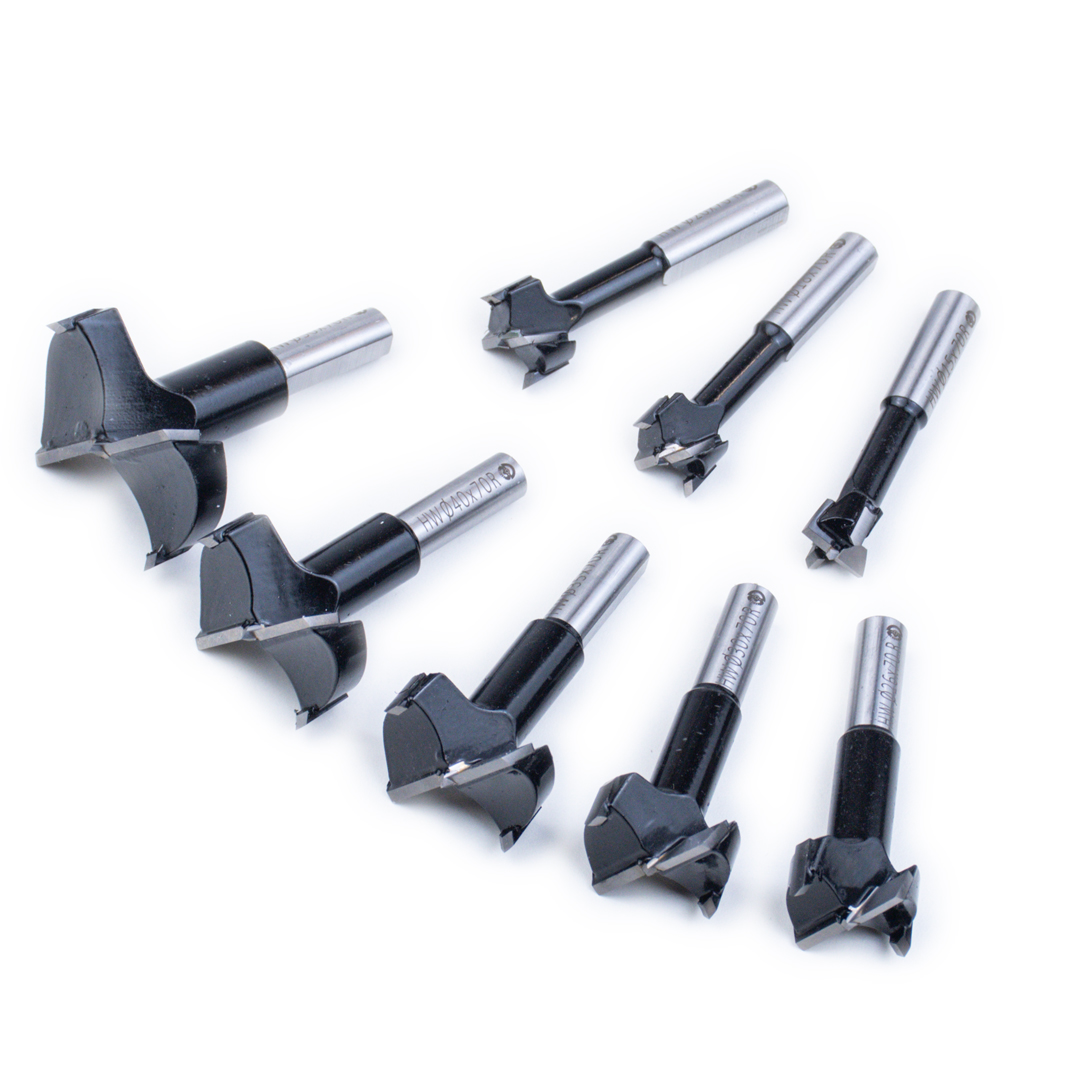 Для монтажа мебельной фурнитуры (дверные петли, замки, эксцентриковые и резьбовые стяжки) требуется не сквозное отверстие, имеющее плоское дно и ровные и аккуратные края. При этом до выхода вершины сверла наружу может оставаться всего 1-2мм. Обычные винтовые сверла, не могут обеспечить ровную плоскость дна отверстия, а перьевые и корончатые сверла – чистоту и точность боковых поверхностей. Именно поэтому для поставленной задачи применяются чашечные свёрла.