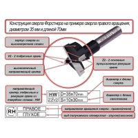 Представленные свёрла является отличным примером специализированных инструментов, которые выполняют поставленные задачи максимально качественно и эффективно. Инструмент позволяет сверлить глухие отверстия большого диаметра в древесине и материалах из дерева с высоким качеством и точностью обработки поверхности.