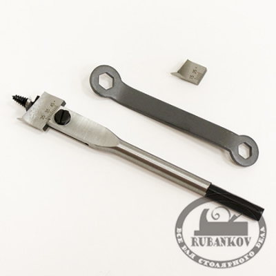 Сверла перьевые Kanzawa. Оснащены передвигающимися ножами с линейкой, благодаря чему позволяет сверлить отверстия диаметром от 15мм до 76мм. Центральное острие в виде шурупа. Выпускаются в 2 типоразмерах: 15-45мм и 22-76мм.