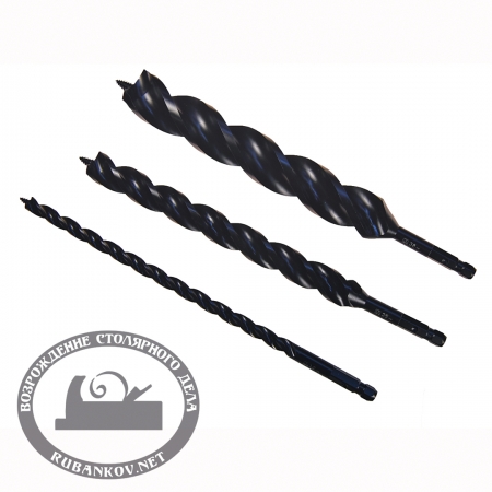 Длинные сверла с шестигранным хвостовиком для экстремального использования. Идеальны для сверления древесины с эпизодически встречающейся металлической фурнитурой, таких как каркасные дома (прокладка кабелей), строительный лес, деревянные конструкции и т.д. Диаметр сверл от 9мм до 38мм. Тип сверла - спиральные шнековое трехзаходное с увеличенным углом наклона для эффективного отвода стружки . Используются для сверления сквозных и глухих отверстий в мягкой и твердой древесине. Рекомендуется вороток для свёрл с шестигранными хвостовиками 6.35мм и 9мм, Star-M.
