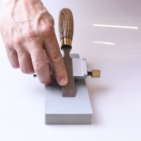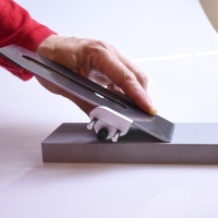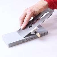 - Мы не стали делать одну из зажимных губок полукруглой, но сосредоточились на максимально точном выполнении всех деталей. Благодаря этому наша точилка не имеет люфтов и несостыковок в форме правой и левой губок. При таком исполнении мы гарантируем точное позиционирование клинка и ножа рубанка по отношению к заточной поверхности абразива.