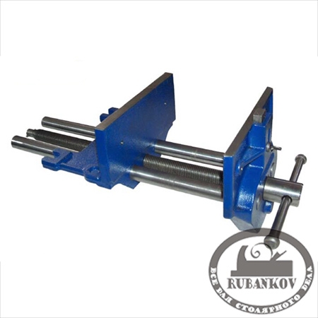 Тиски столярные с двумя направляющими и быстрозажимным механизмом. Общая длина - 402мм, ход винта - 205мм. Диаметр винта - 24мм, высококачественная трапециевидная резьба с шагом - 5мм. Материал винтов - сталь, корпус - чугун. Масса - 9кг. Производство - York (Чехия).