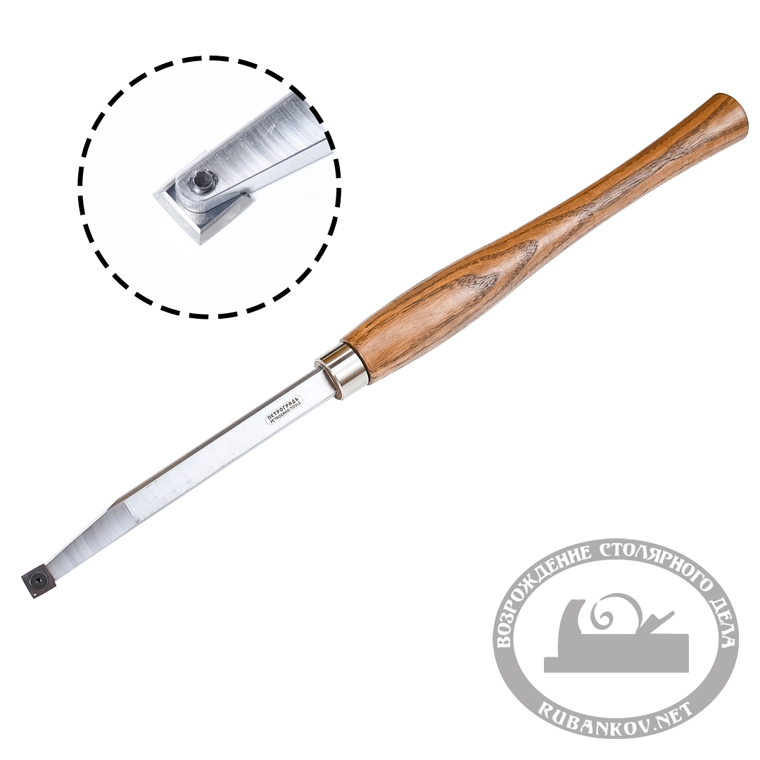 Токарный расточной резец по дереву, ПЕТРОГРАДЪ, с квадратной насадкой. Один из самых универсальных циклевочных резцов. За счет жесткой державки и твердосплавной режущей пластины позволяет снимать большое количество материала. Помимо этого, представленный резец может выступать как финишный при выравнивании стенок и донышек. Производство фабрика Петроградъ (Россия).