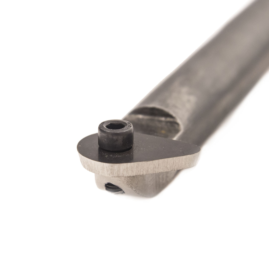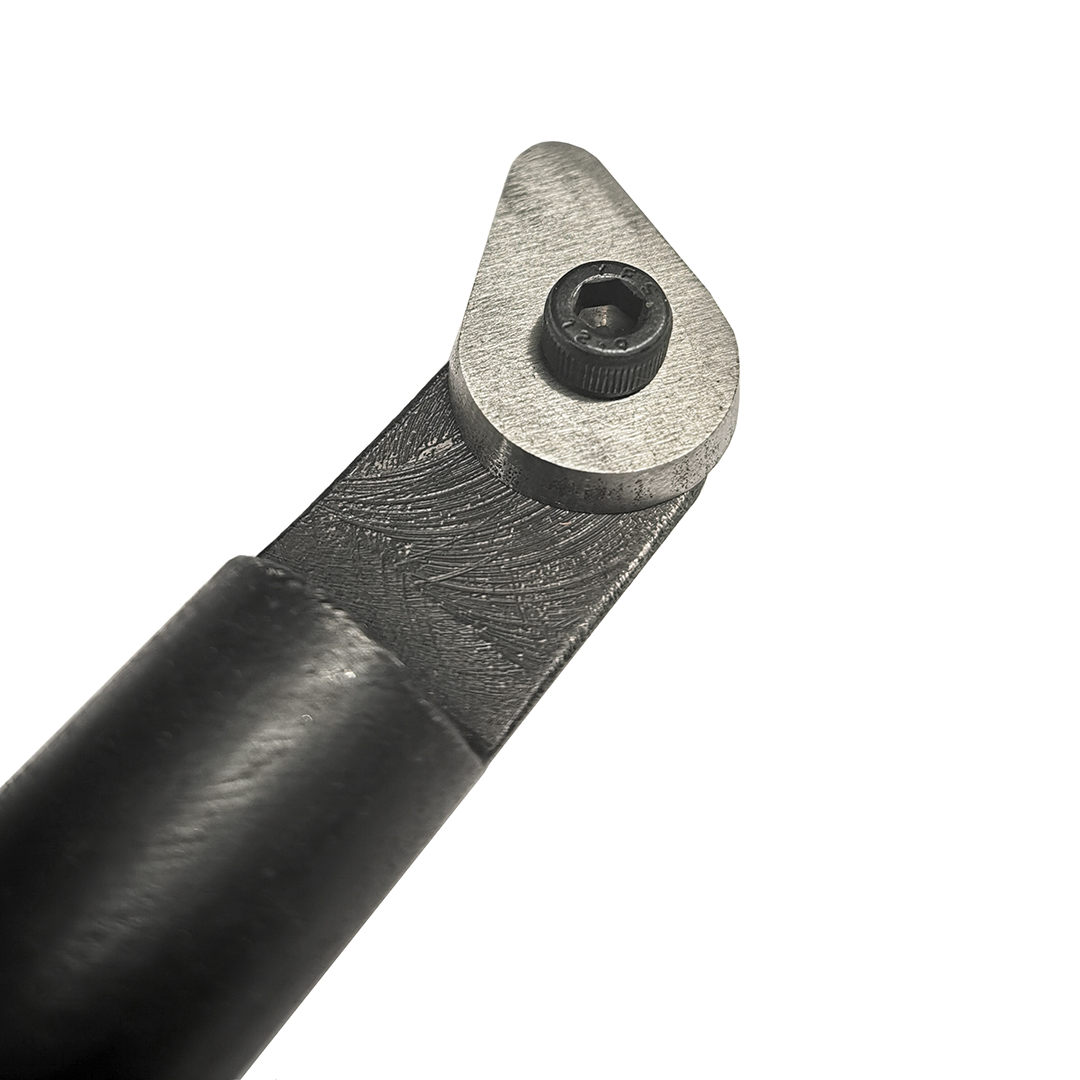 Первый из линейки токарных резцов компании Петроградъ изготовленный на основе токарного резца Брюкшен, сконструированного известным мастером токарного дела Александром Геннадьевичем Брюкнером. Резец имеет ряд преимуществ первое это качество обработки, качество сварного шва основного нагруженного узла, который противостоит крутящему моменту возникающему при обработке. Резцы с одной насадкой комплектуется сменными пластинами N18
