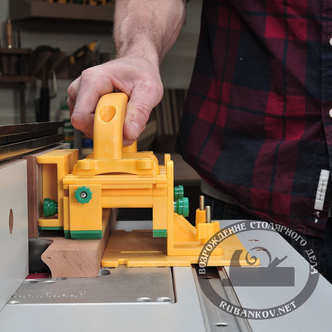 Самый безопасный и наиболее настраиваемый прижим от MicroJig. Можно использовать со всеми циркулярными пилами, фрезерными столами, фуговальными станками и так далее.