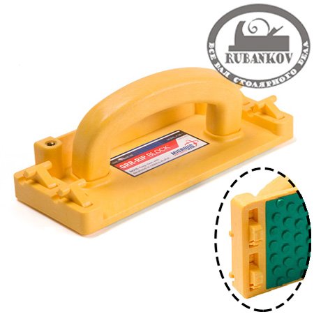 Толкатель GRR-Rip Block. Длина - 350мм. Горизонтальное и вертикальное использование. Специальная не скользящая поверхность в основании толкателя, убирающиеся упоры по краям основания. Применяется для безопасного проталкивания заготовок на фрезерных столах, форматно-раскроечных станках, ленточных пилах и т. п. Производстово Microjig (США)