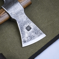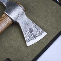 Каждый топор Петроградъ выполнен вручную с предельным вниманием к деталям. Для головы топора используется рессорная сталь 65Г, обладающая наилучшей ударной вязкостью. Рукояти изготавливаются из цельного куска массива ясеня без сучков и покрываются специальным маслом, обладающим экстремальной устойчивостью к образованию царапин.