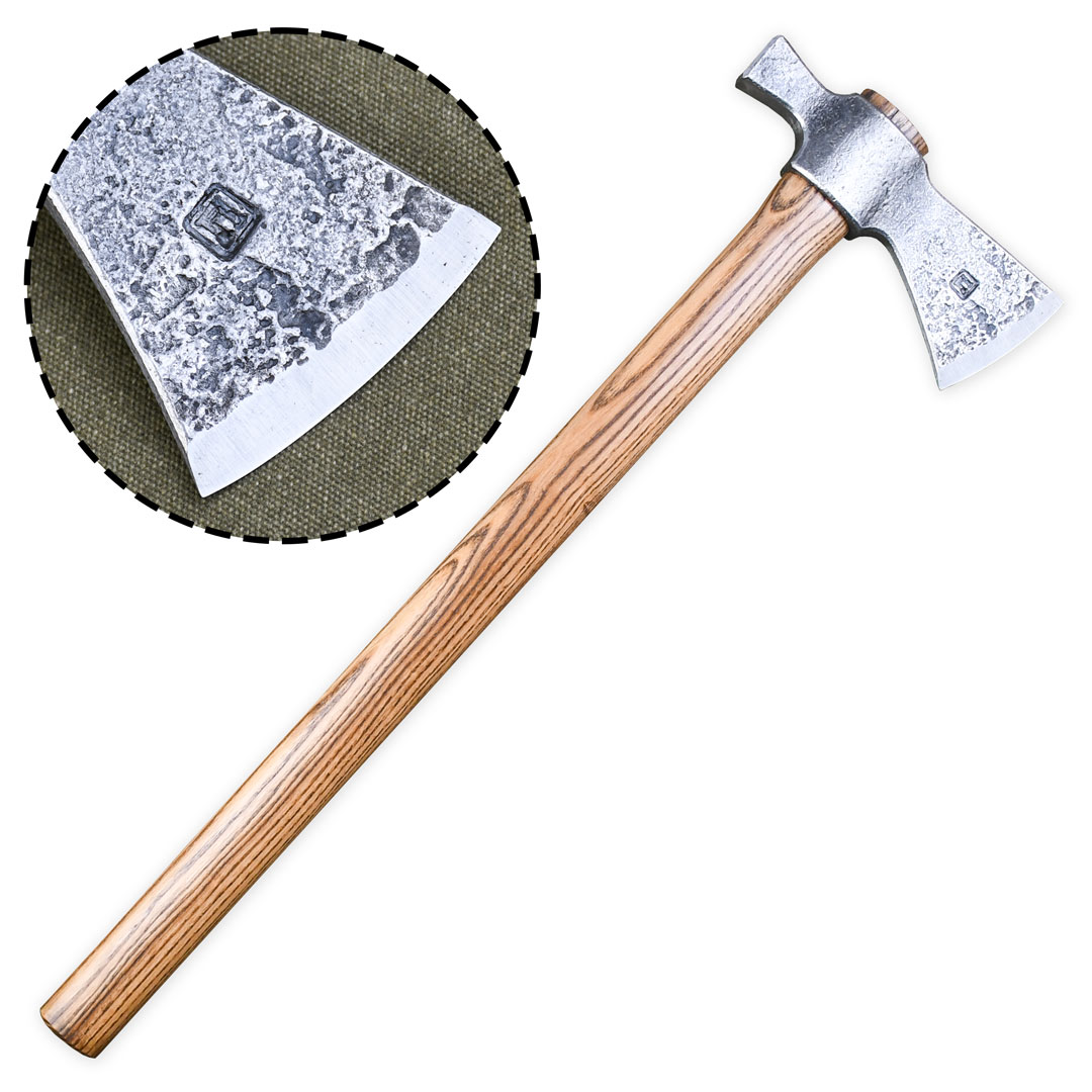 Топор-чекан ПЕТРОГРАДЪ, модель Туров. Выпускается в 2 исполнениях: с прямым и обратным всадом. Топор был спроектирован по образцу древних топоров-чеканов, во множестве найденных на местах археологических раскопок, проводивших на территориях древнерусских княжеств. Ручная ковка и индивидуальный подход к изготовлению каждого топора позволяет нам гарантировать его остроту и надежность. Производство фабрика Петроградъ (Россия).