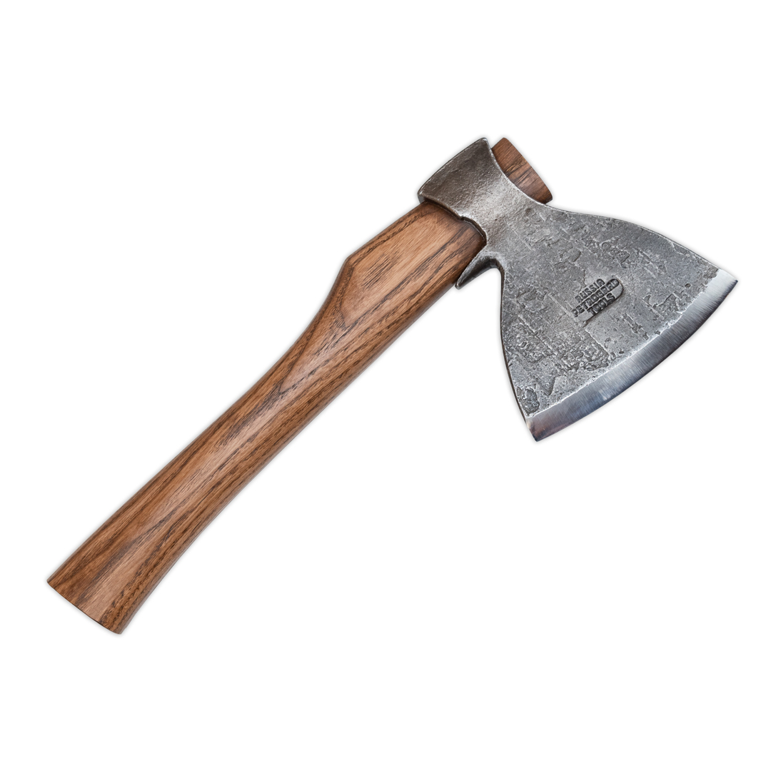 Каждый топор Петроградъ выполнен вручную с предельным вниманием к деталям. Для головы топора используется рессорная сталь 65Г, обладающая наилучшей ударной вязкостью, что позволяет свести к 0 вероятность раскола топора при ударе о камни или любые другие твердые предметы. Рукояти изготавливаются из цельного куска массива ясеня без сучков и покрываются специальным маслом, обладающим экстремальной устойчивостью к образованию царапин.
