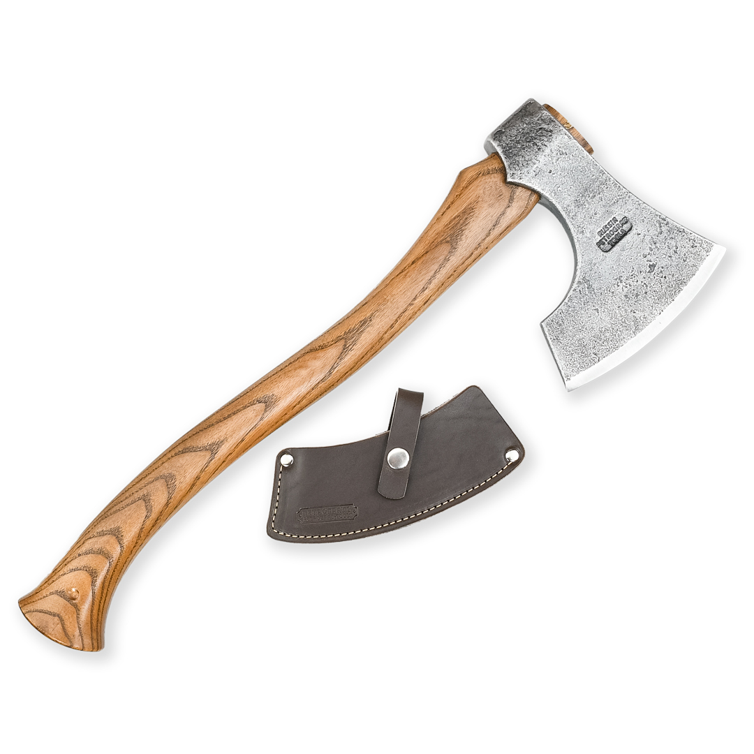 Ручная ковка придает уникальный характер каждому экземпляру, делая его не просто инструментом, но и предметом гордости. Рукоять, изготовленная из отборного ясеня, обеспечивает удобный и надежный хват, минимизируя усталость при длительной работе. Эргономичный дизайн и сбалансированный вес обеспечивают точность и удобство в использовании, делая этот топор идеальным выбором для профессионалов, ценящих качество и эффективность.