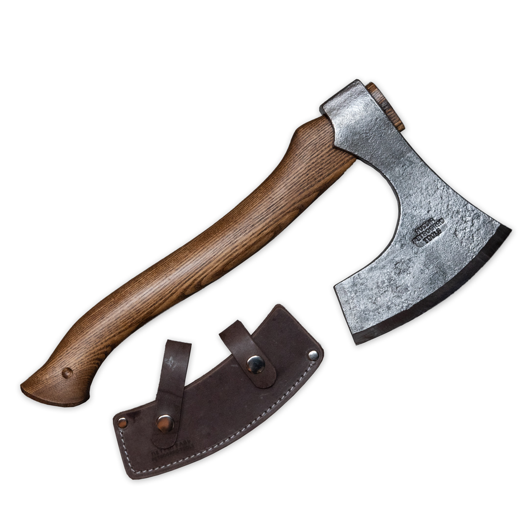 Каждый топор Петроградъ выполнен вручную с предельным вниманием к деталям. Для головы топора используется рессорная сталь 65Г, обладающая наилучшей ударной вязкостью. Рукояти изготавливаются из цельного куска массива ясеня без сучков и покрываются специальным маслом, обладающим экстремальной устойчивостью к образованию царапин.