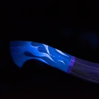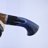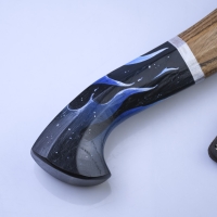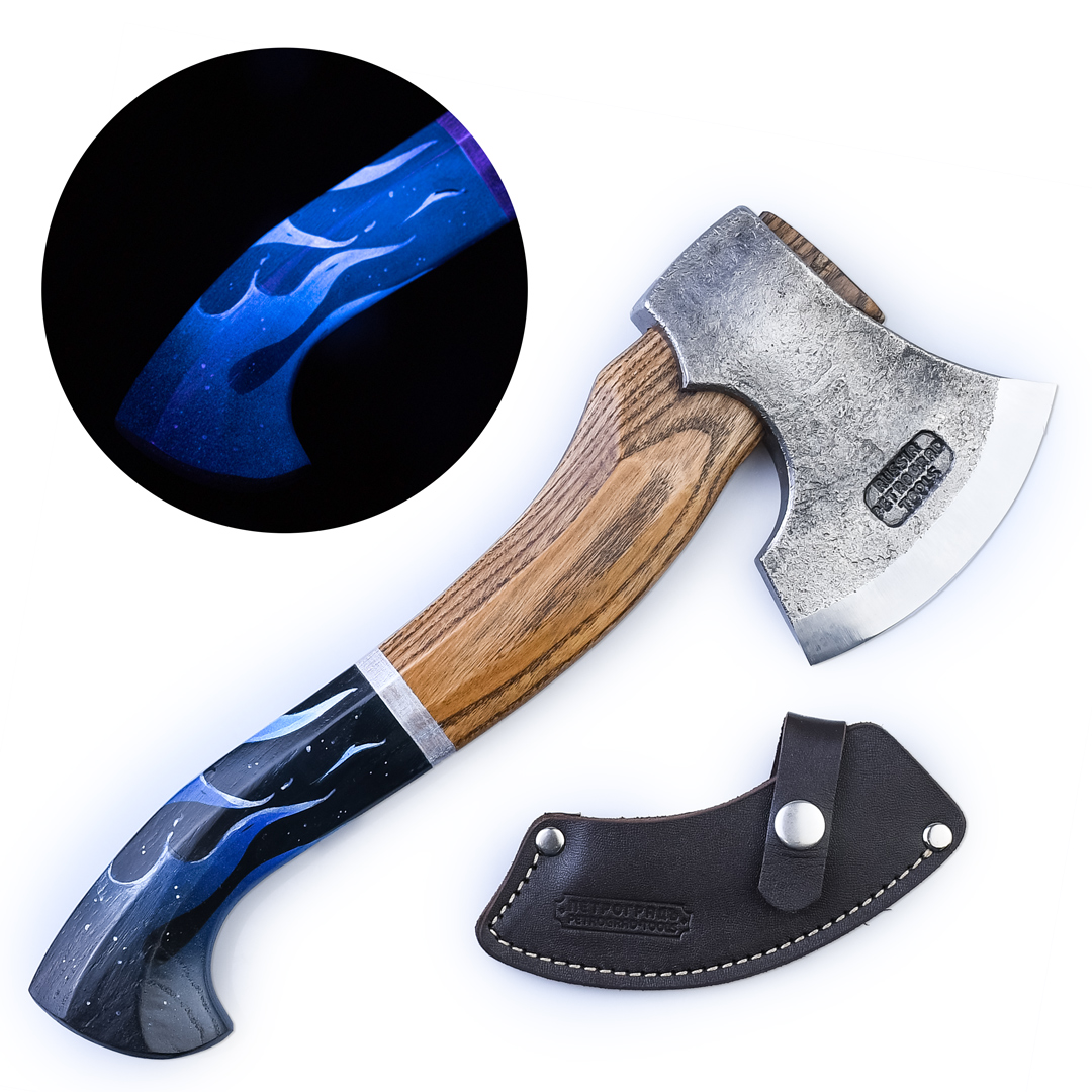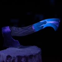 Топор ПЕТРОГРАДЪ, модель Китеж, авторская роспись "Ледяное пламя". Эта модель создана, опираясь в разработке на модели традиционных ремесленных топоров. Вырез на топоре позволяет держать его ближе к голове для более точной работы. Производство фабрика Петроградъ (Россия)