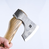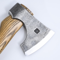 Кованный топор Рославль 7. Этот топор идеальный компаньон в короткой вылазке в лес, на охоте, рыбалке и конечно же на шашлыке в лесу. Топор отличается умеренными габаритами, он легок, компактен и удобно лежит в руке. Ручная ковка и индивидуальный подход к изготовлению каждого топора позволяет нам гарантировать его остроту и надежность. Производство фабрика Петроградъ (Россия).